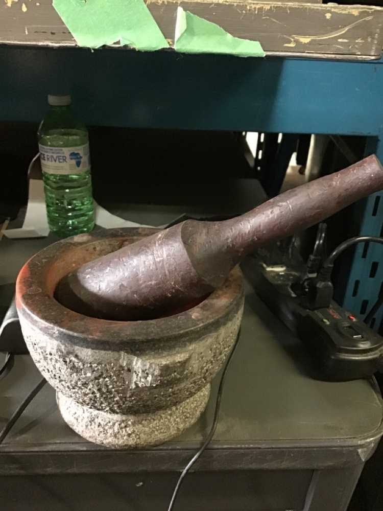 Grey Stone/Wood Pestle And Mortar
