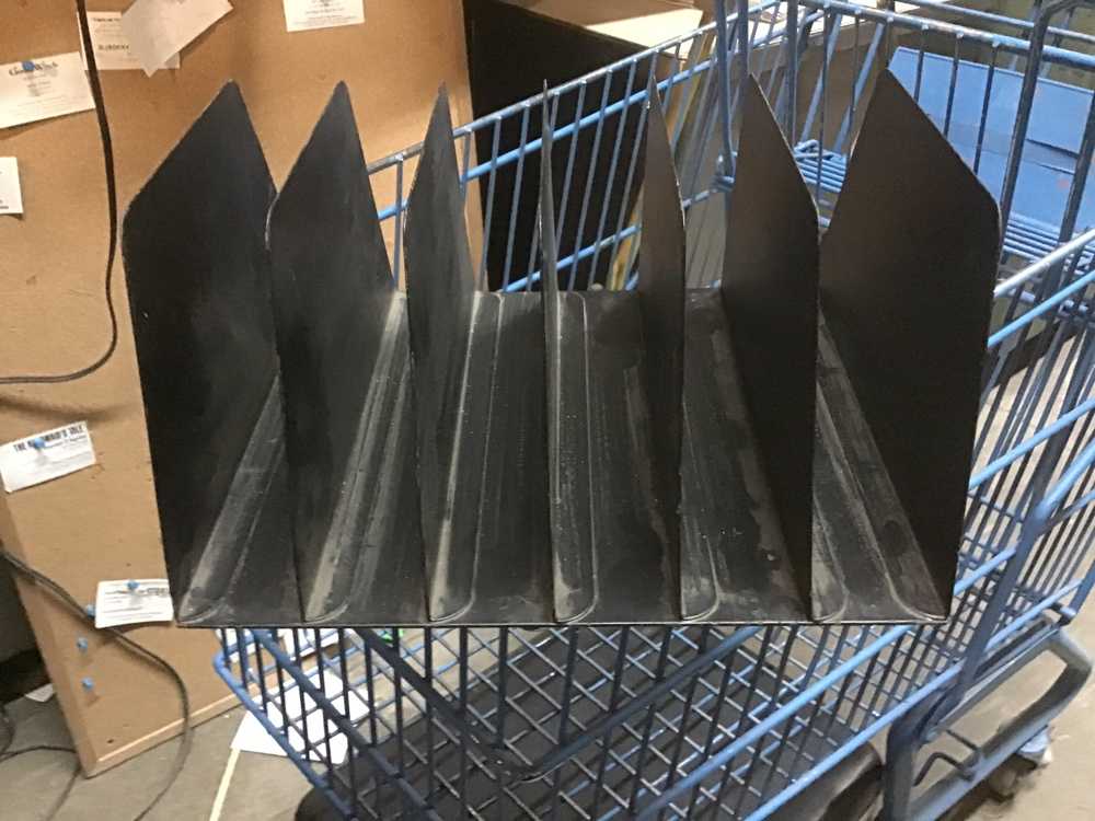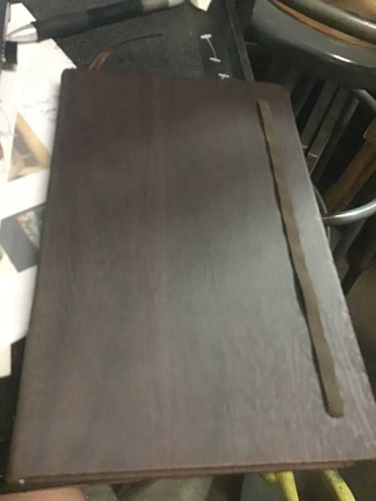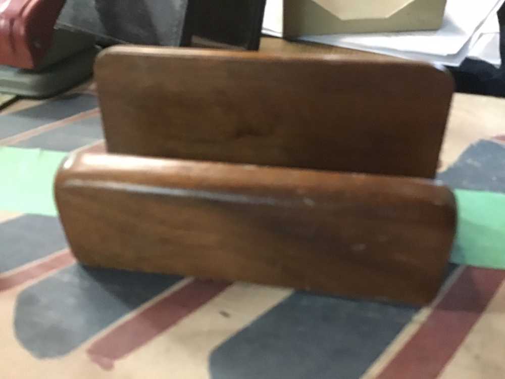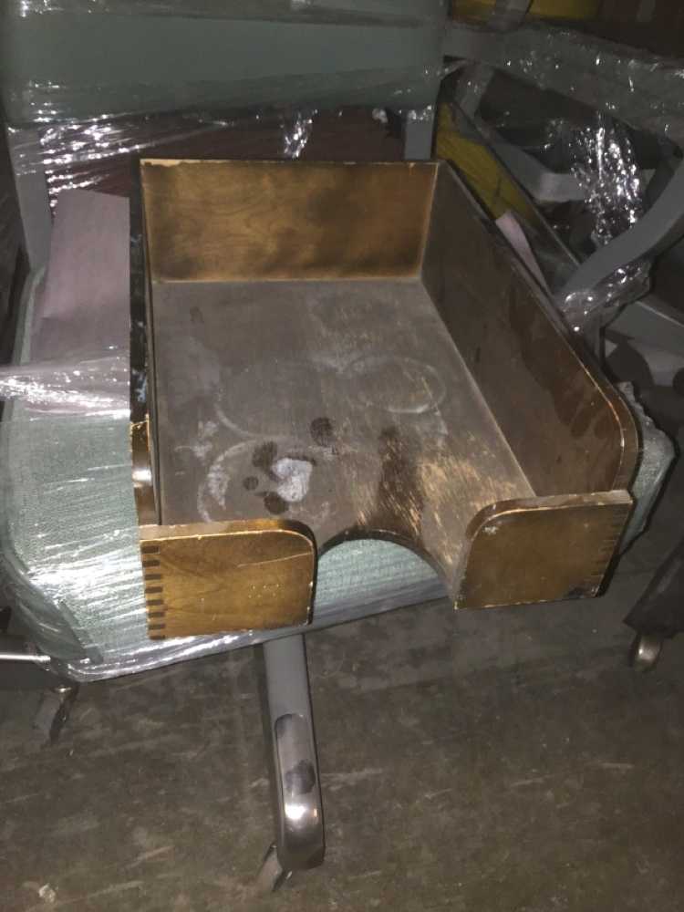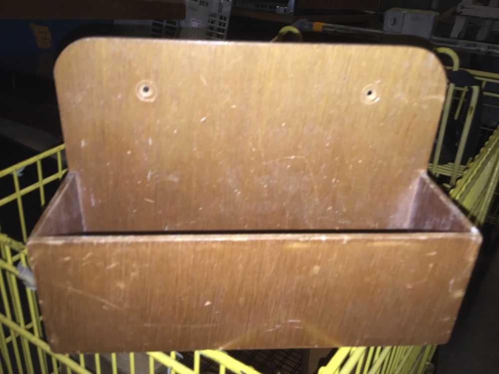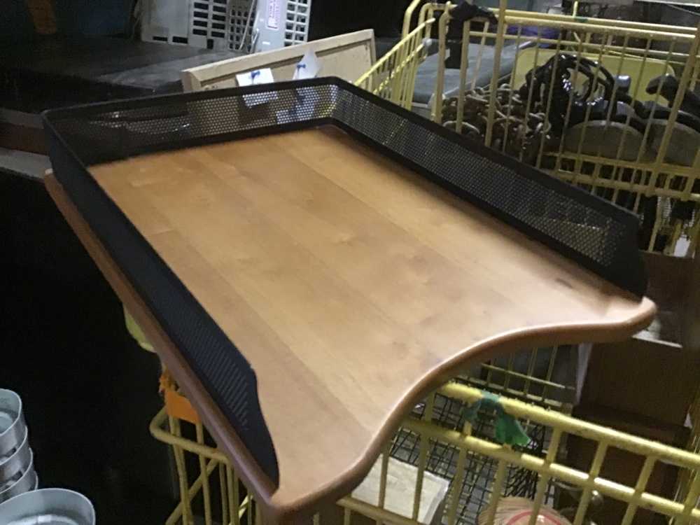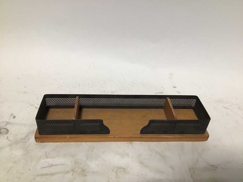 Brown Wood In/Out Tray With Black Metal Perforated Sides
