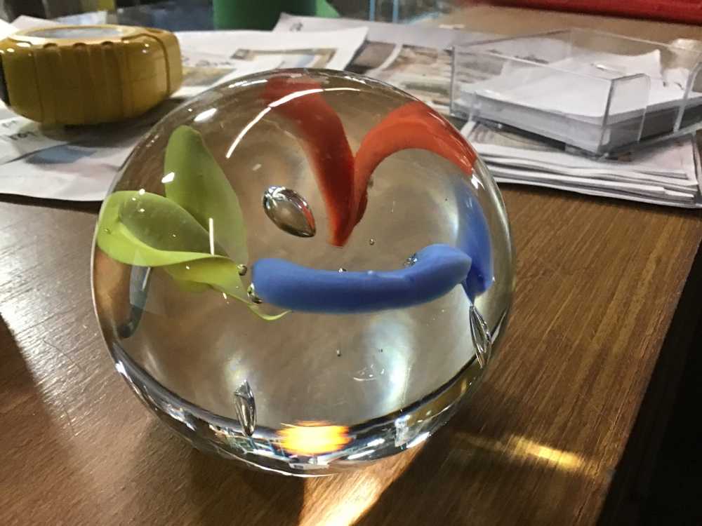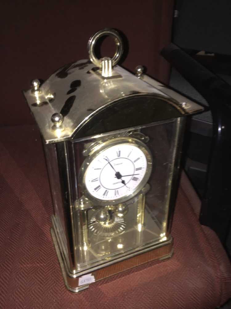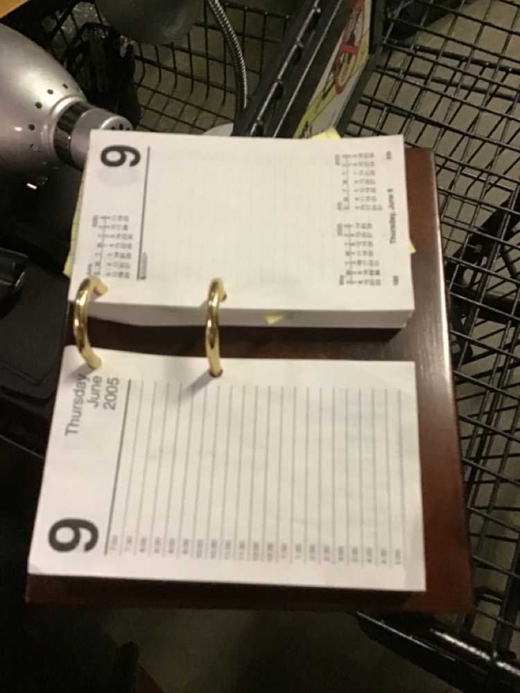 Brown Wood Pen Stand With Black Plastic Pen And Mini Chrome Calendar