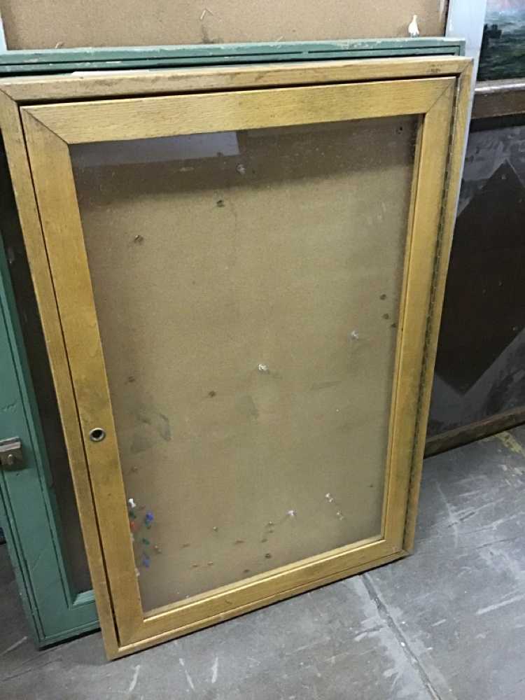 Brown Wood Frame Cork Board Cabinet With Glass Door