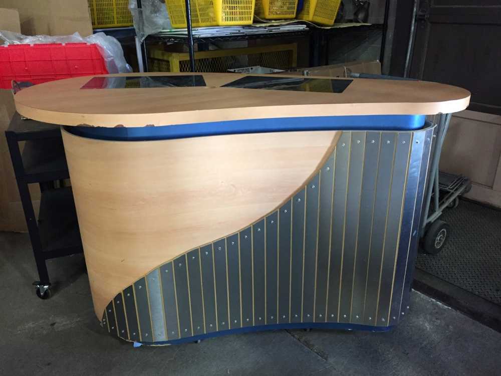 Large Front Desk Or Bar Or Counter Or Valet Stand. Some Chips To Laminate On Front Edge And Bottom. On Casters, Plexi Inserts On Top