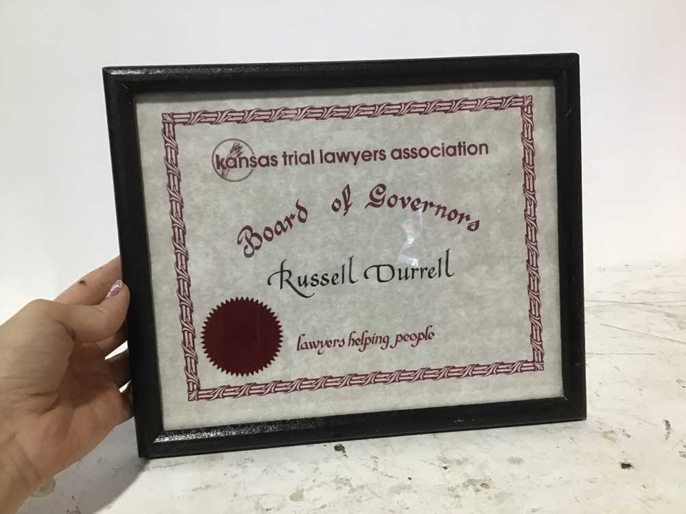 Kansas Trial Lawyers Association Diploma Frame In Glass
