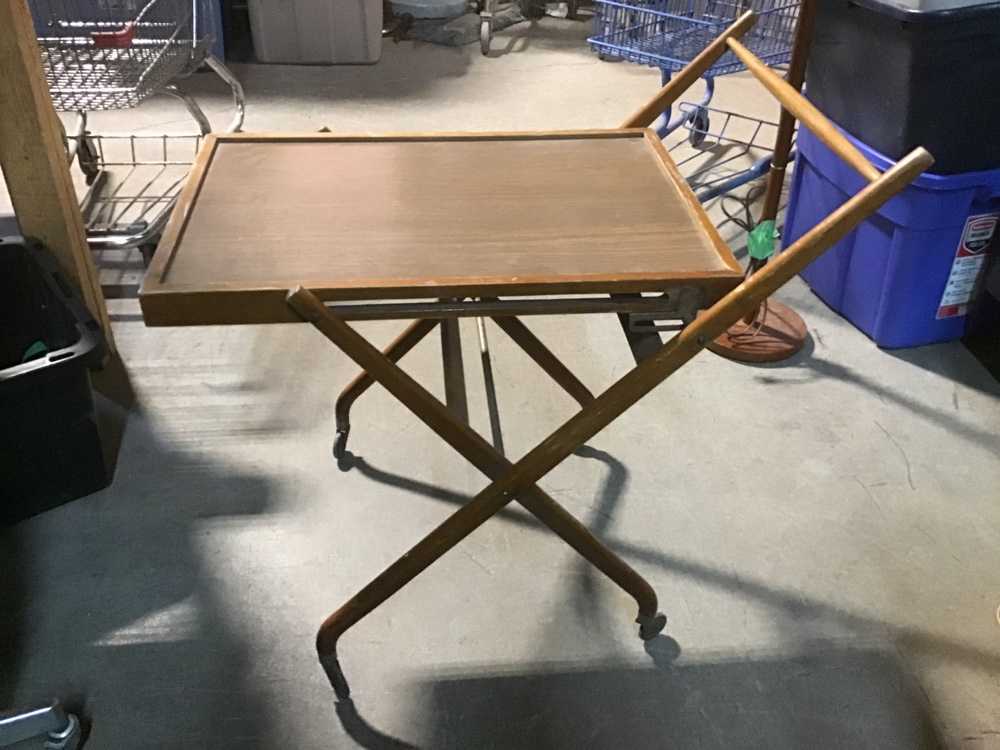 Brown Wood Folding Bar Cart