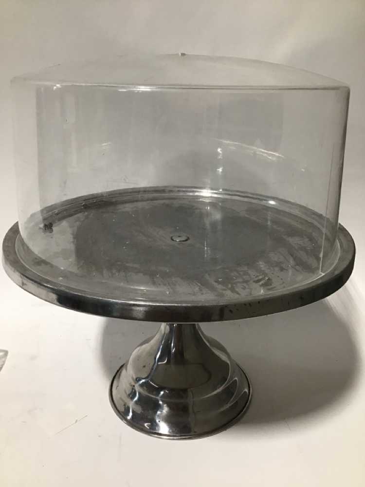Cake Display Stand With Plastic Lid (2 Cracks In Lid)