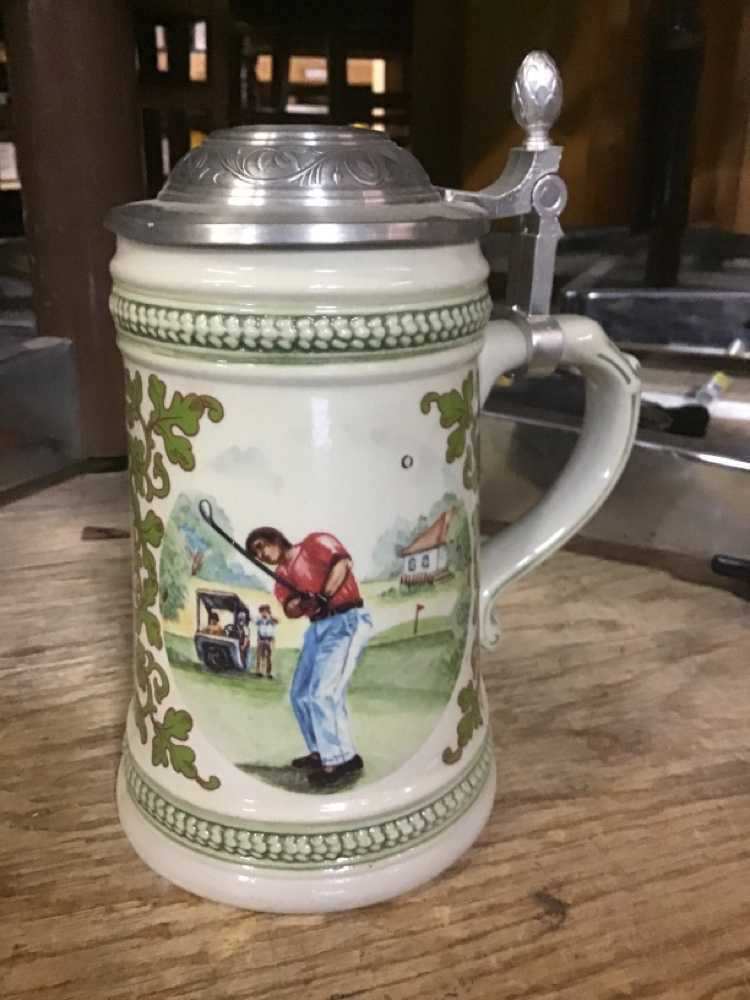 Ceramic Beer Stein With Golf Design On Side