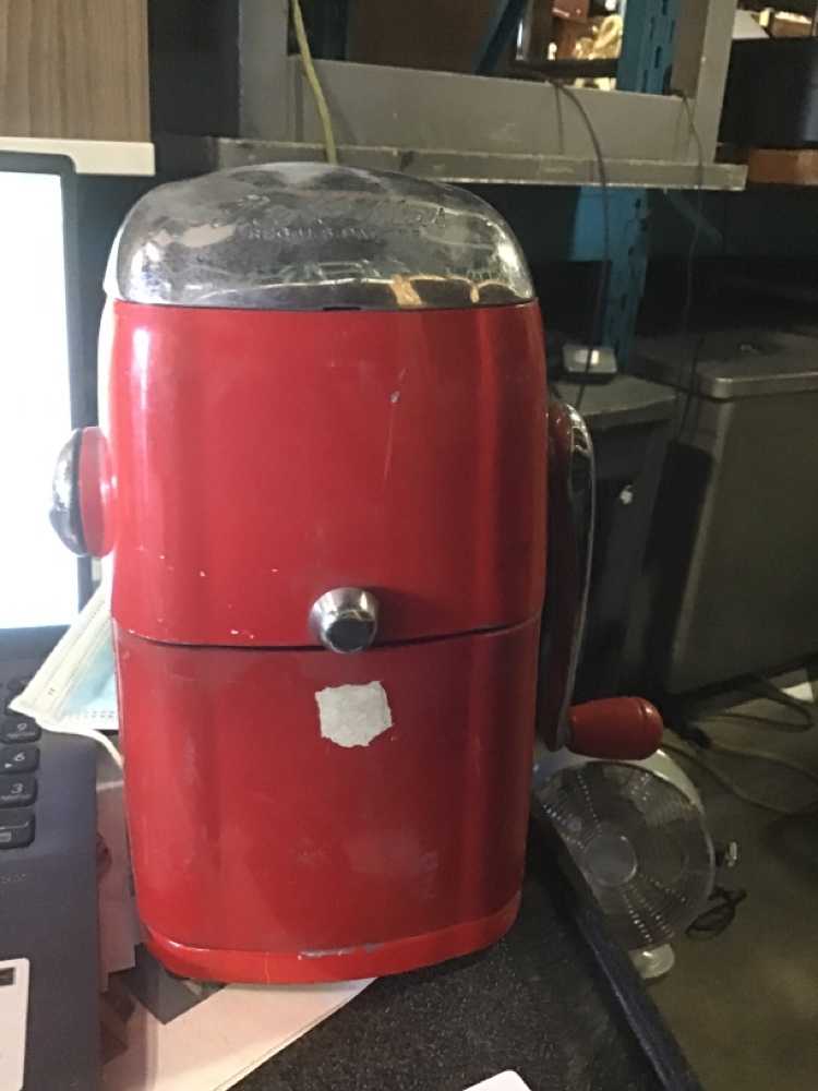 Red Chrome Metal Vintage Ice Grinder [ Ice O Mat ]