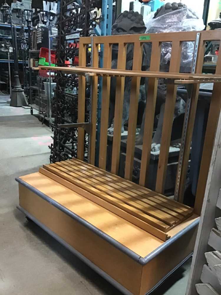 Black Metal Rolling Frame Blond Wood Slat Adjustable Food Display Stand