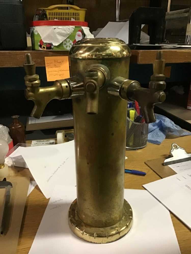 Brass Beer Tap With 2 Spouts And 2 Wood Beer Pull Tabs