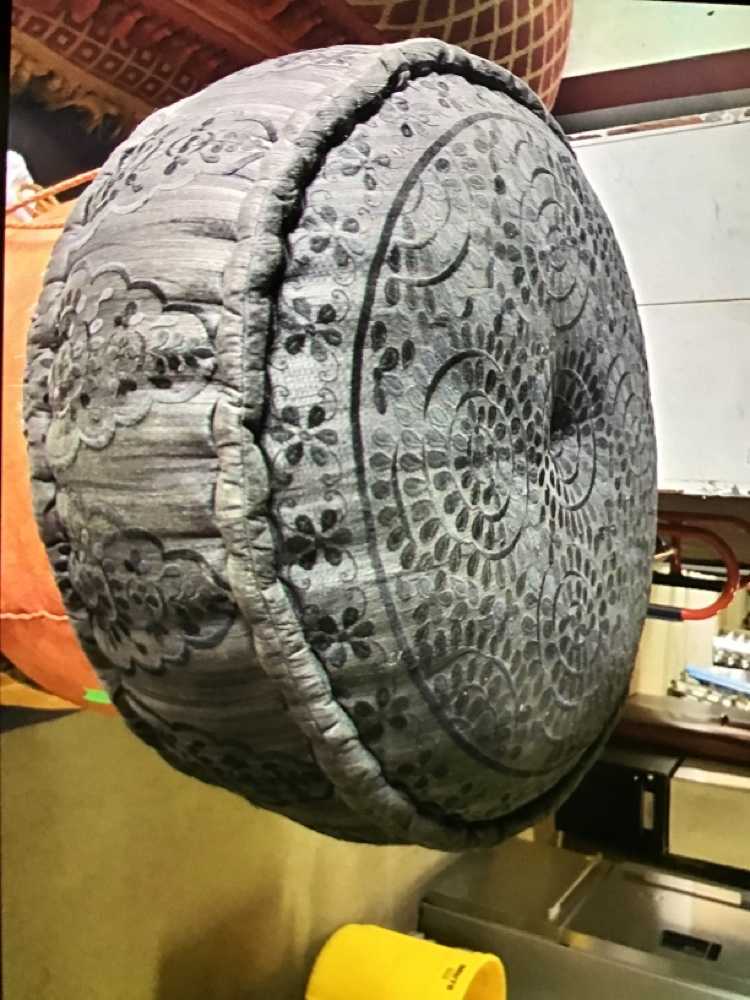Grey Metal Frame Drafting Stool With Beige Vinyl Seat