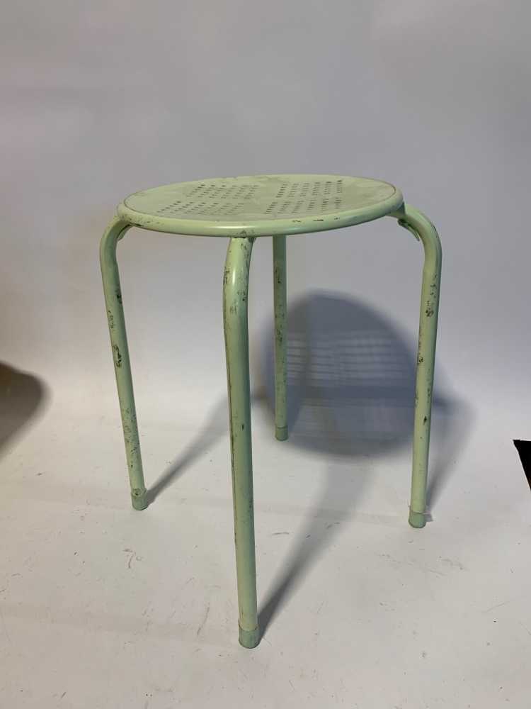 Green Bent Metal Cafe Chairs With Vinyl Cushions