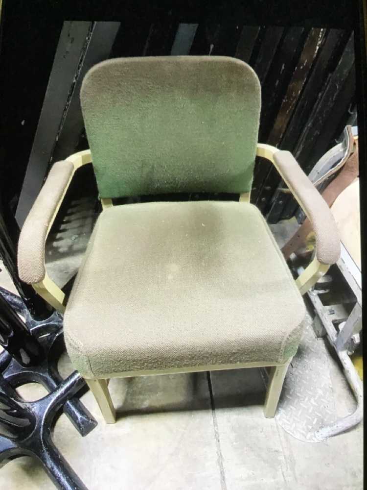 Grey Metal Framed Green Aged Fabric Waiting Room Chair With Armrest