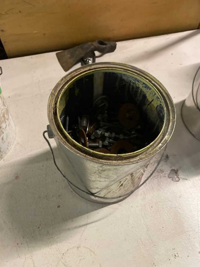 Can Of Various Hardware, Nails, Screws, Bolts, Spikes