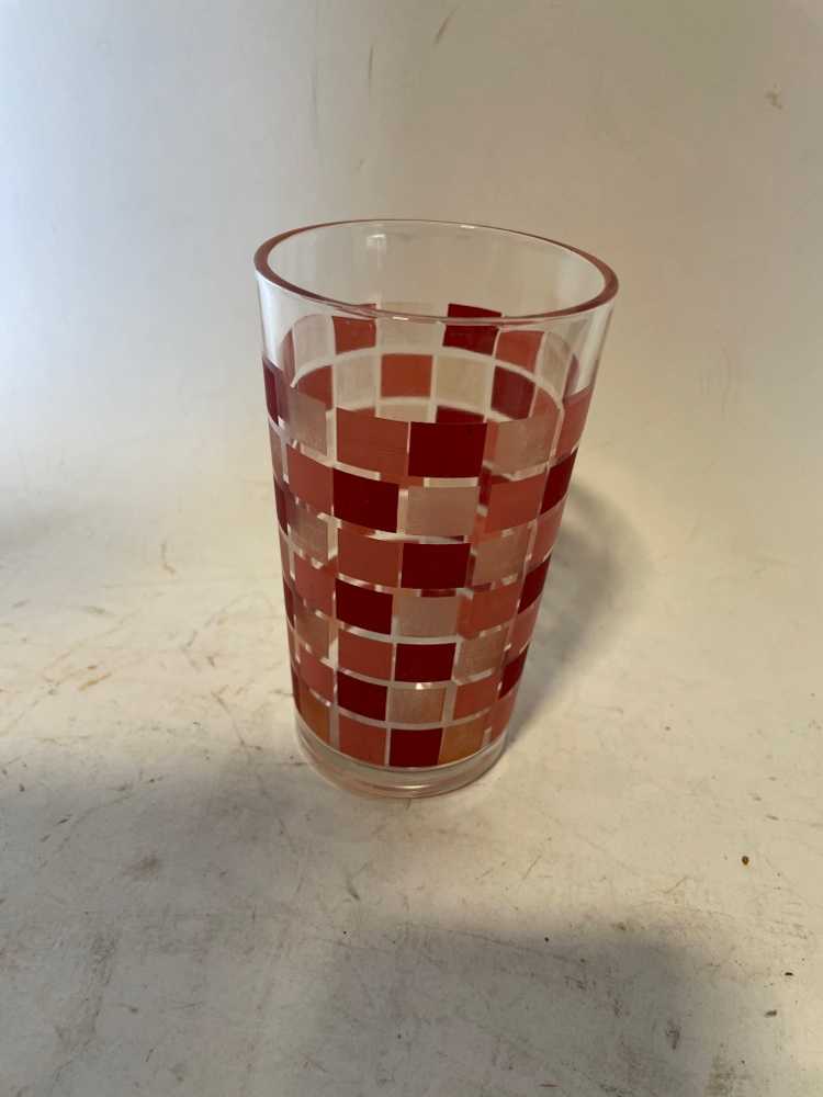 Red And Pink Checkered Glass Vintage