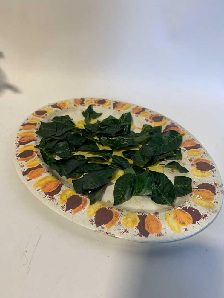 Platter With Leaves Glued Onto It