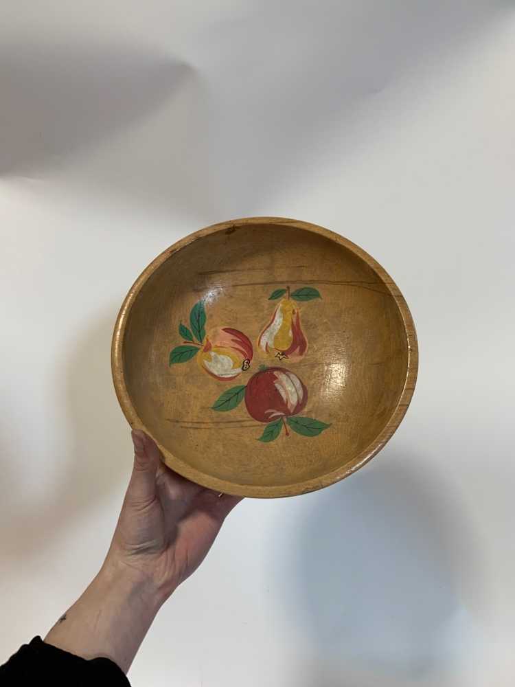 Wood Grain Bowl With Decor Inside