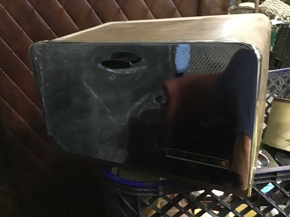 Wood Grain Chrome Tin Bread Box Vintage