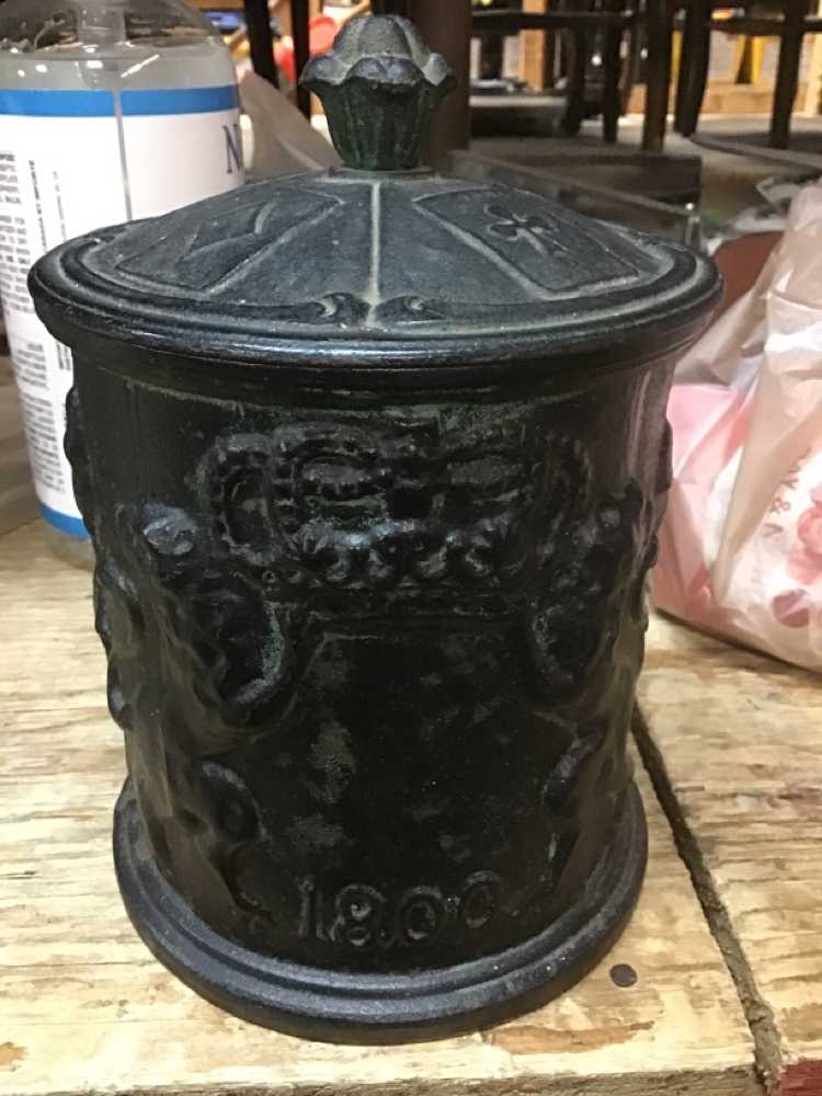 Black Cast Iron Decorative Container With Lion/ Crown Design