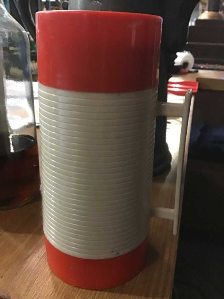 Beige Red Plastic Thermos