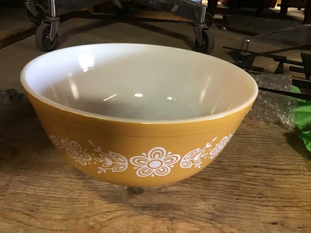 Beige Pyrex Mixing Bowl With Floral Design