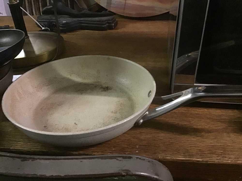 Beige/Chrome Metal Frying Pan