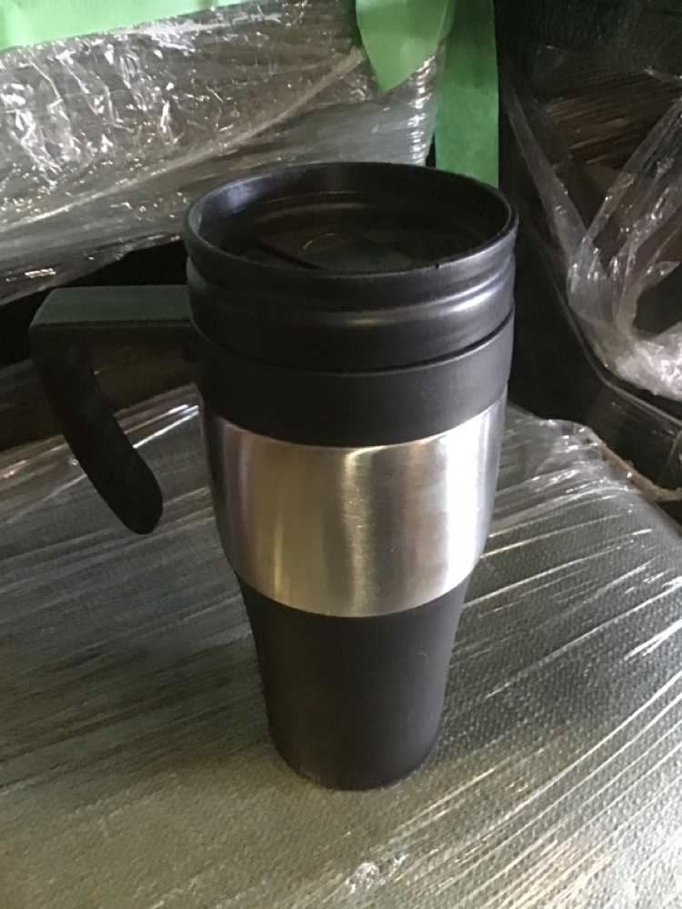 Black Plastic Silver Metal Travel Mug