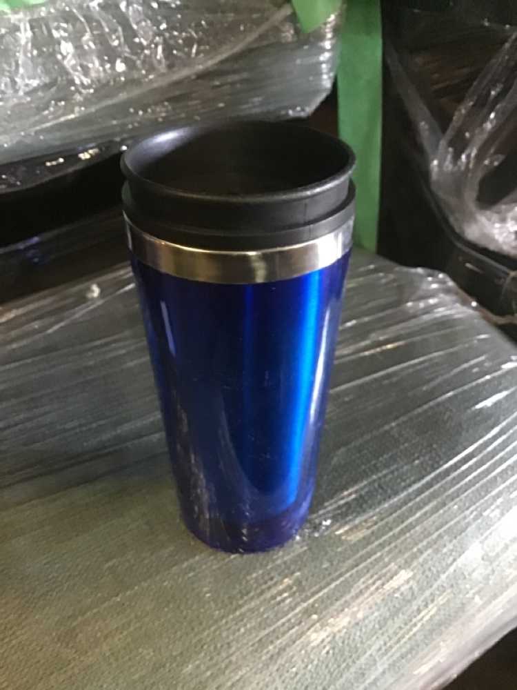 Blue Black Plastic Silver Travel Mug