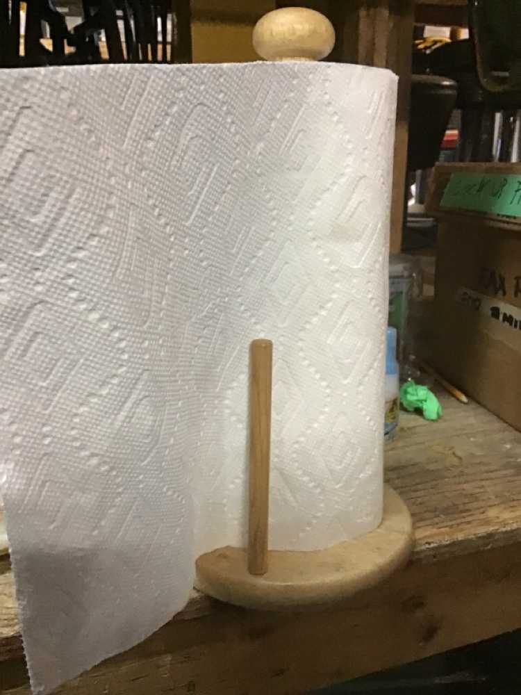 Blond Wood Paper Towel Holder With Paper Towel