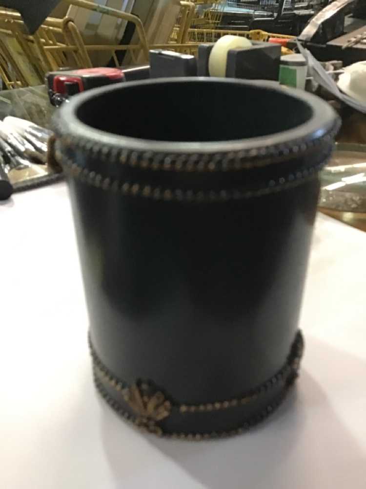 Black Wood Pen Cup Gold Trim