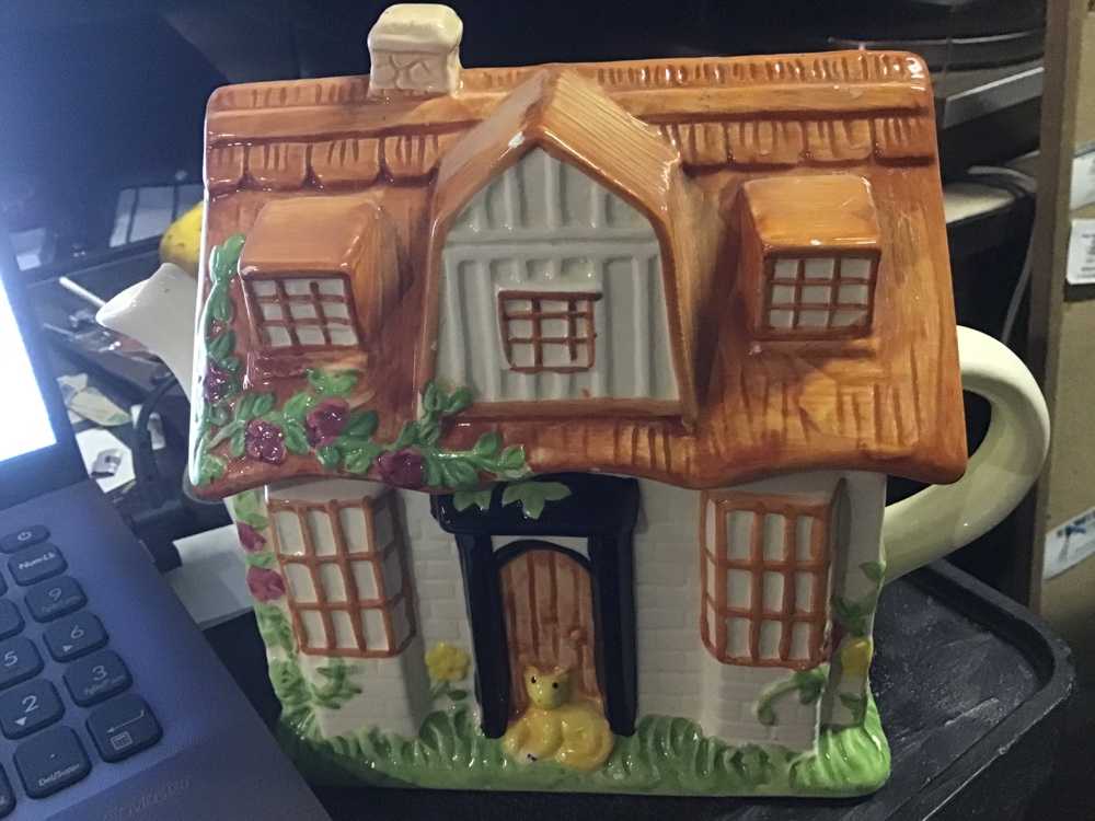 Brown White Black House Teapot