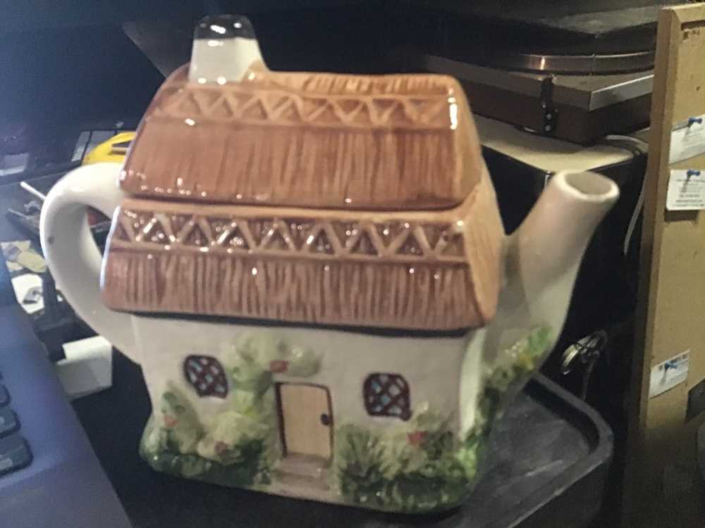 Brown White Black Green House Teapot