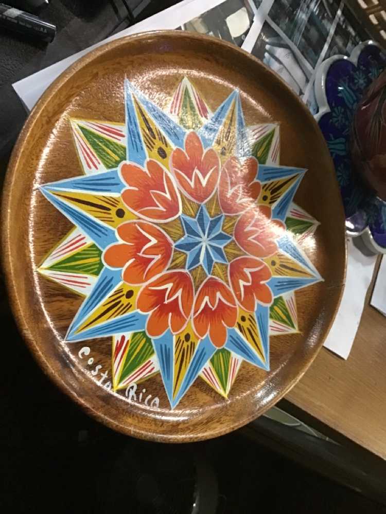 Brown Wood Plate With Multi Colour Floral Design