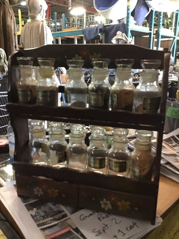 Brown Wood 2 Tier Spice Rack With 12 Glass Spice Jars