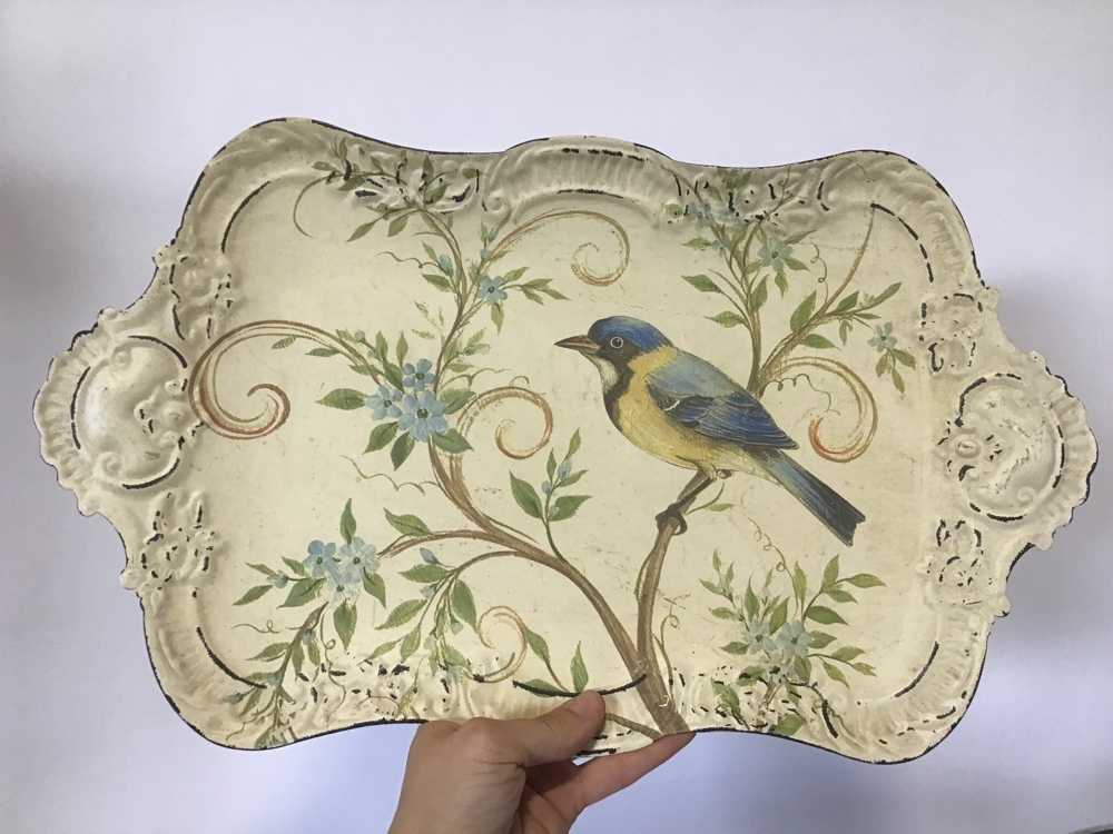 Decorative Cream Metal Bowl On Stand With Deer Head Handles