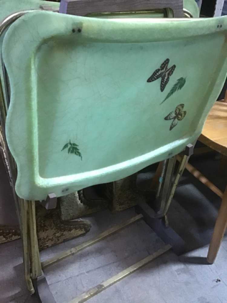 Gold Metal Frame Green Plastic Folding Tv Dinner Tray