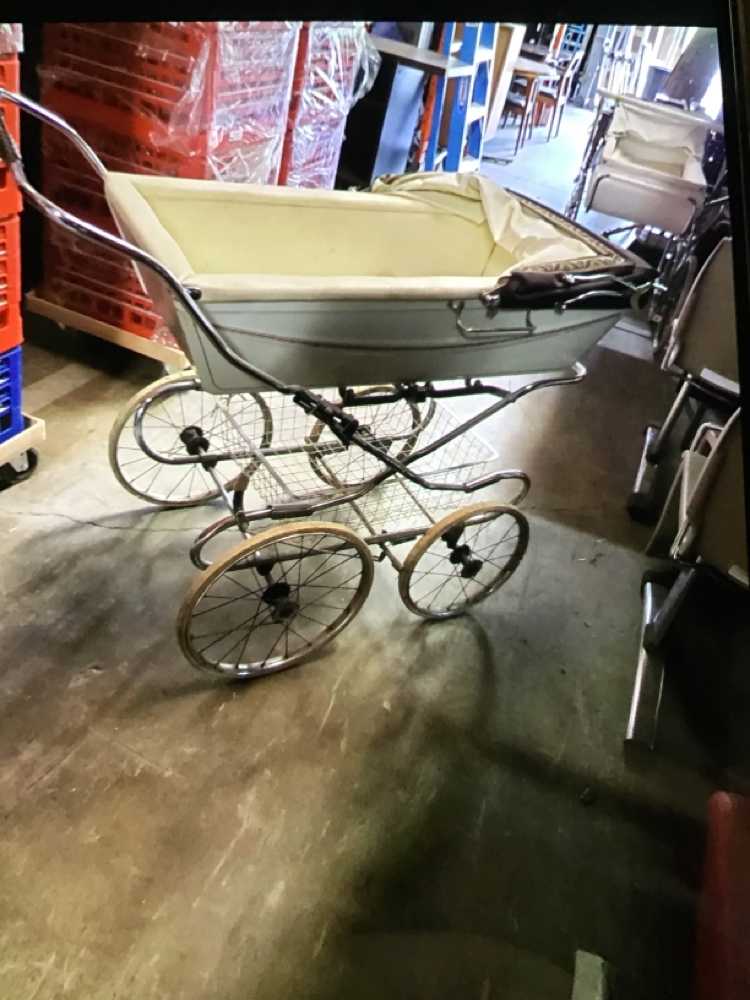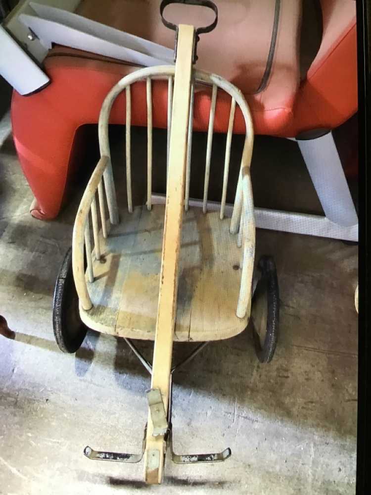Vintage Grey Wood Kids 2 Wheel Stroller With Handle Antique