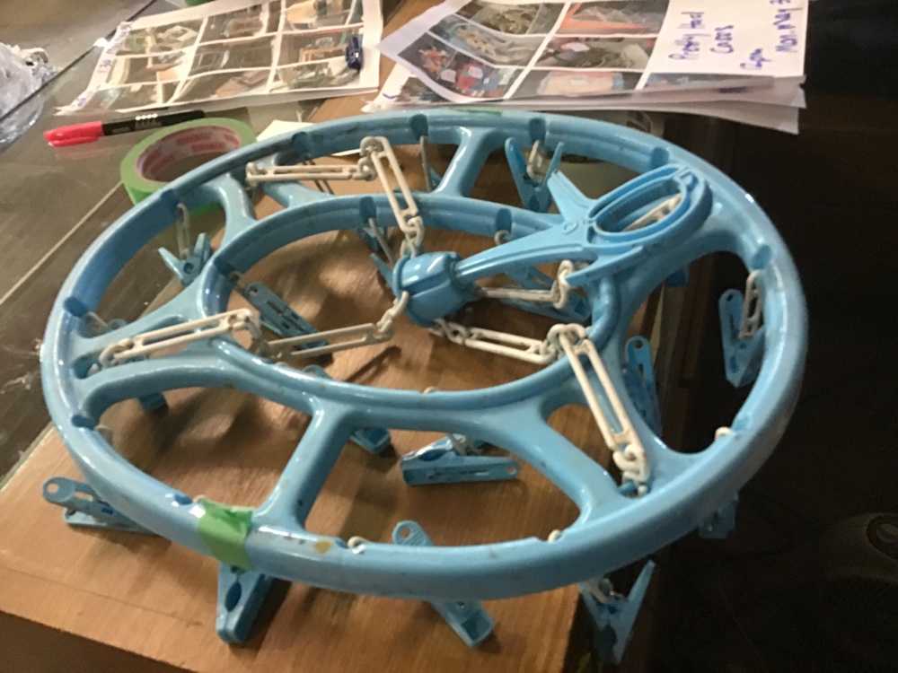 Blue White Fabric Dust Broom With Blond Wood Handle