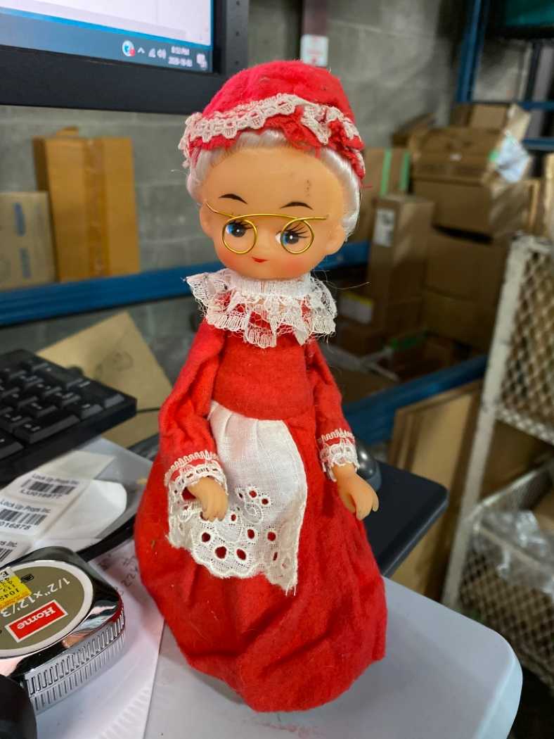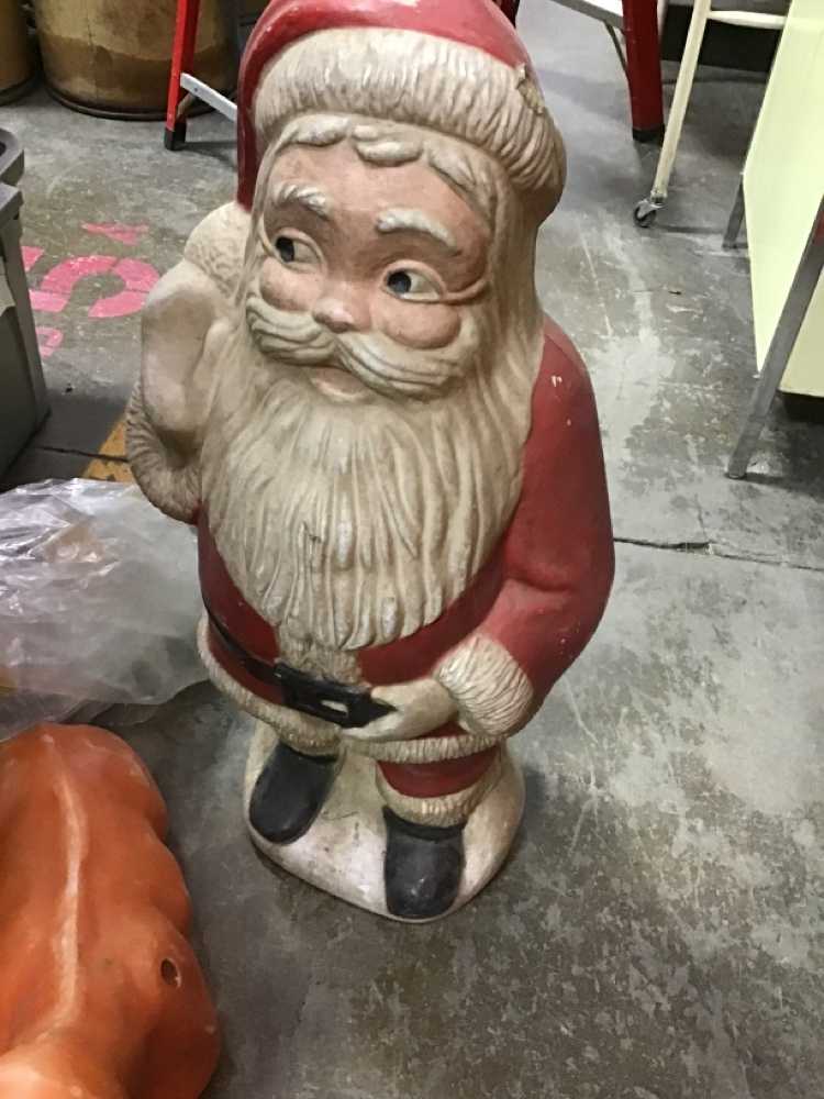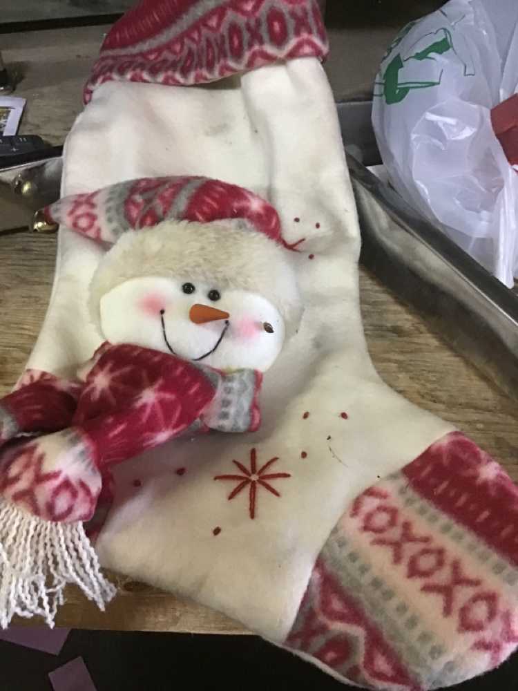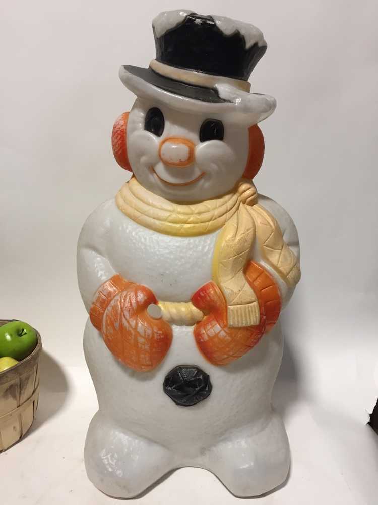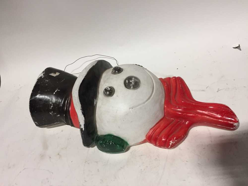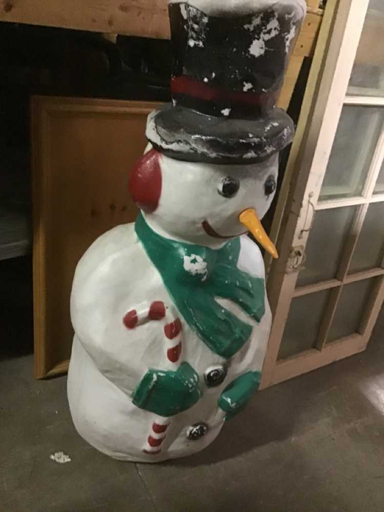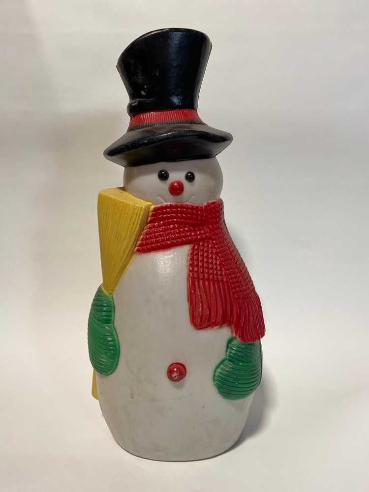 White Wood Snowman With Red Overalls Blue Shirt Green Hat [ Missing Left Foot