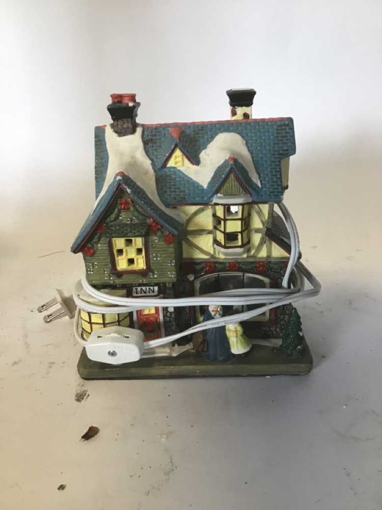 Small Ceramic Christmas House, Winter Scene, Lights Up