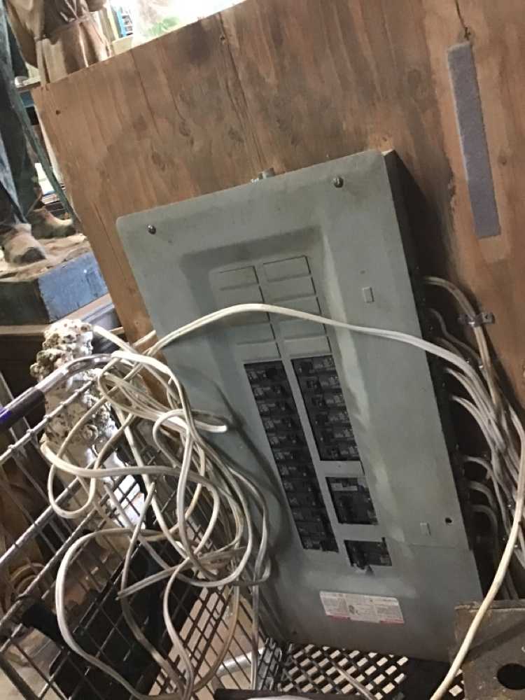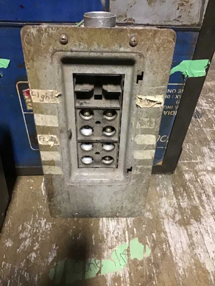 Grey Black Metal Fuze Panel Box On Wood Board With White Cables