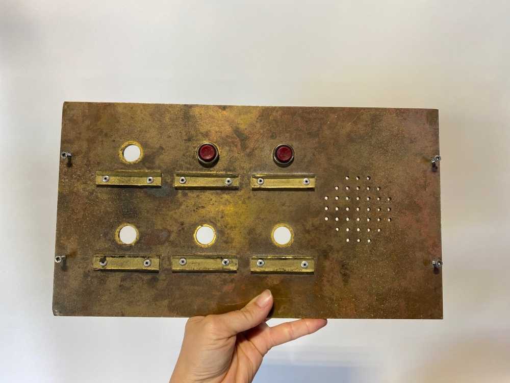 Grey Metal Control Panel With Red, Black. Green Buttons