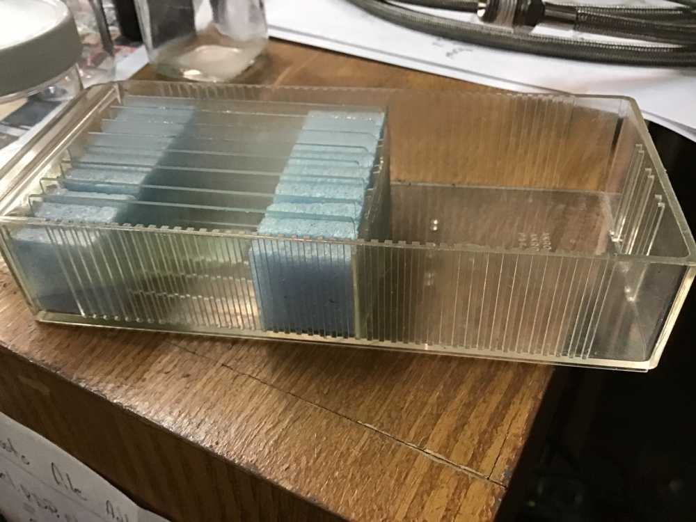 Clear Plastic Bin Of 8 Glass Microscope Slides