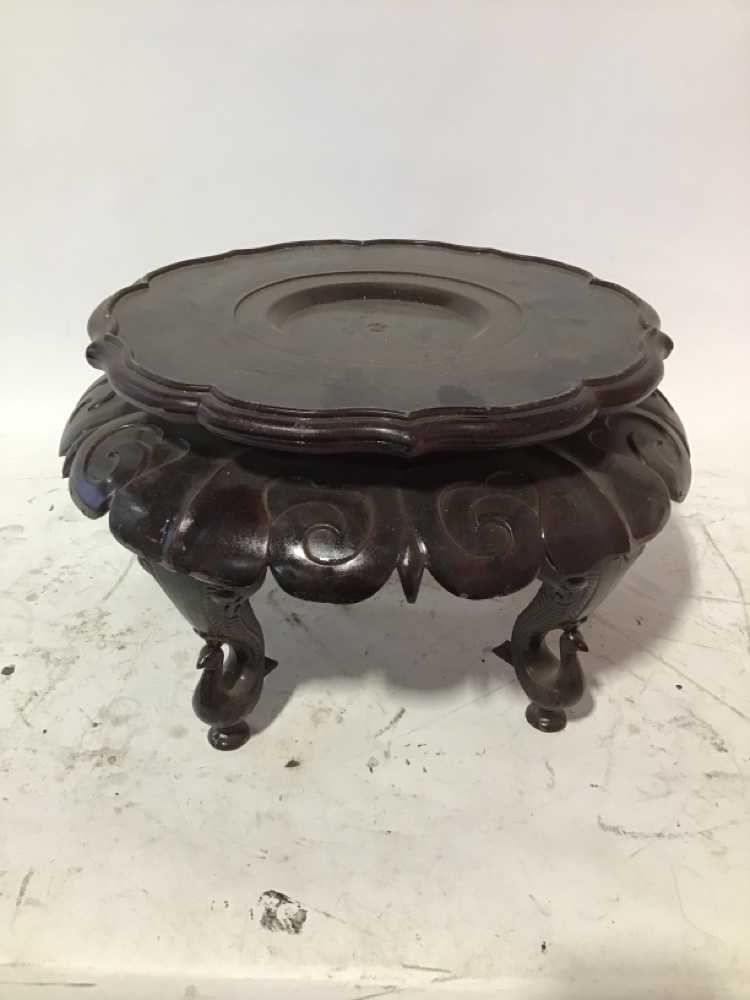Dark Brown Wood 2 Tier Ornate Plant Stand