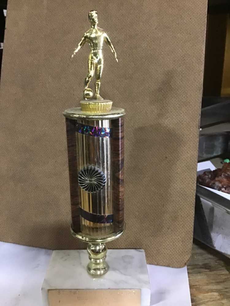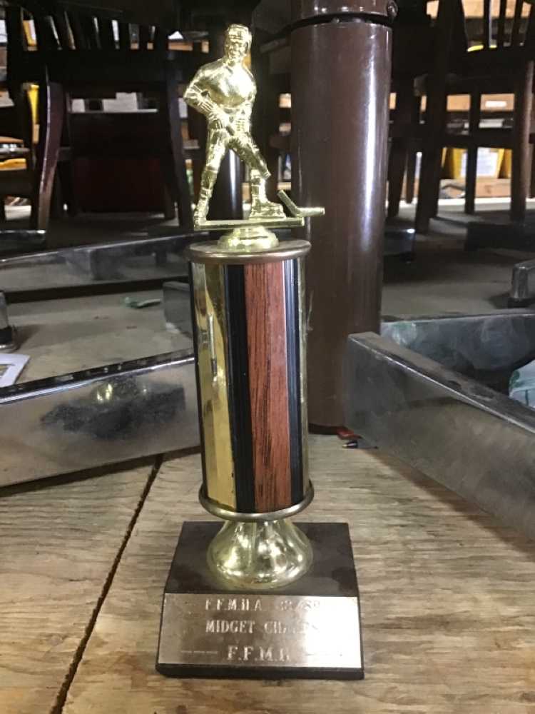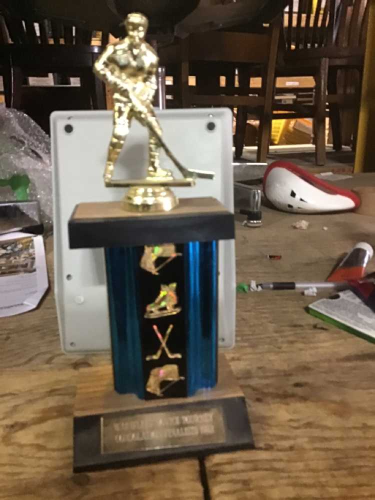 Brown Black Gold Hockey Trophy With Hockey Player On Top
