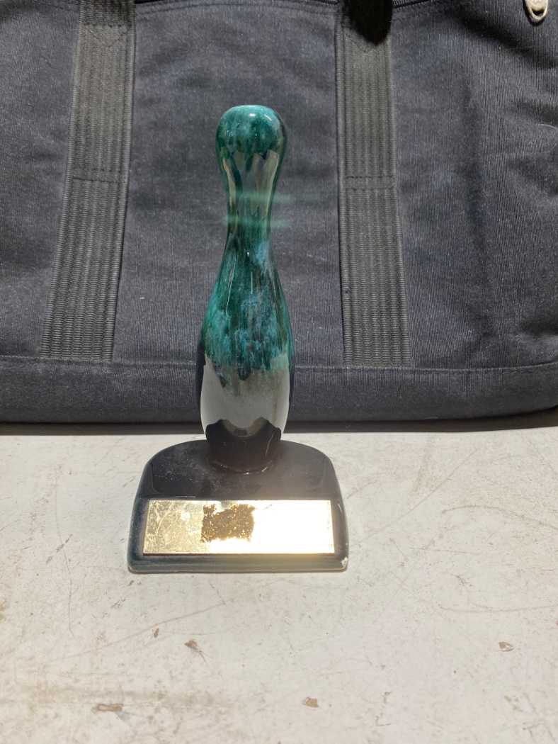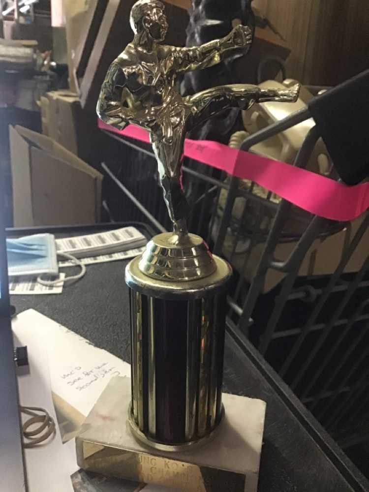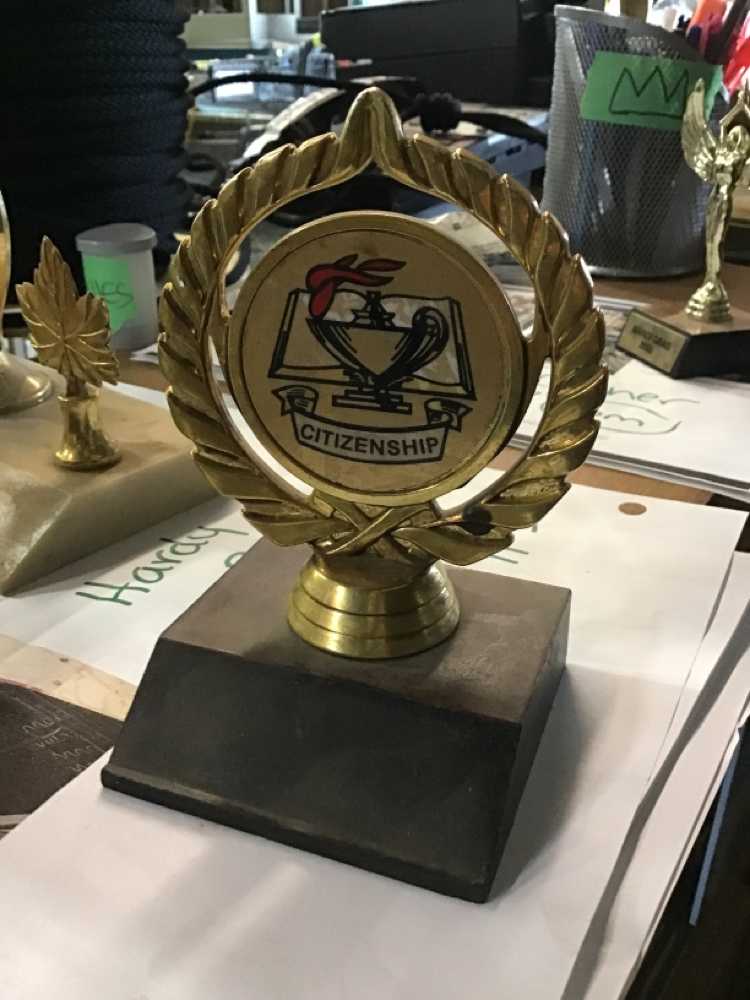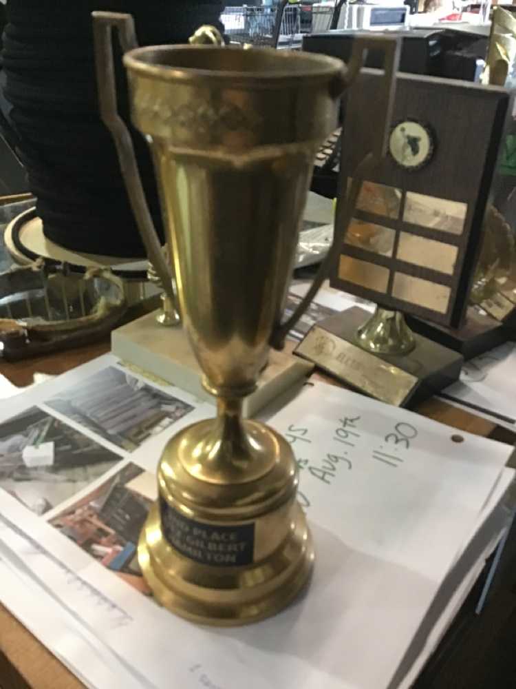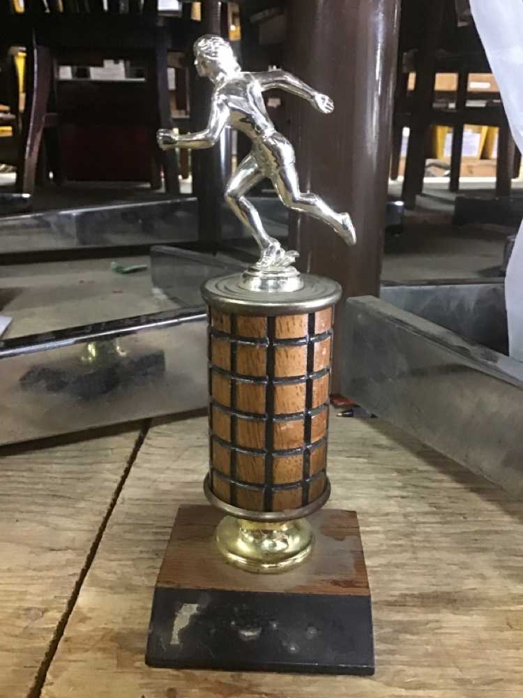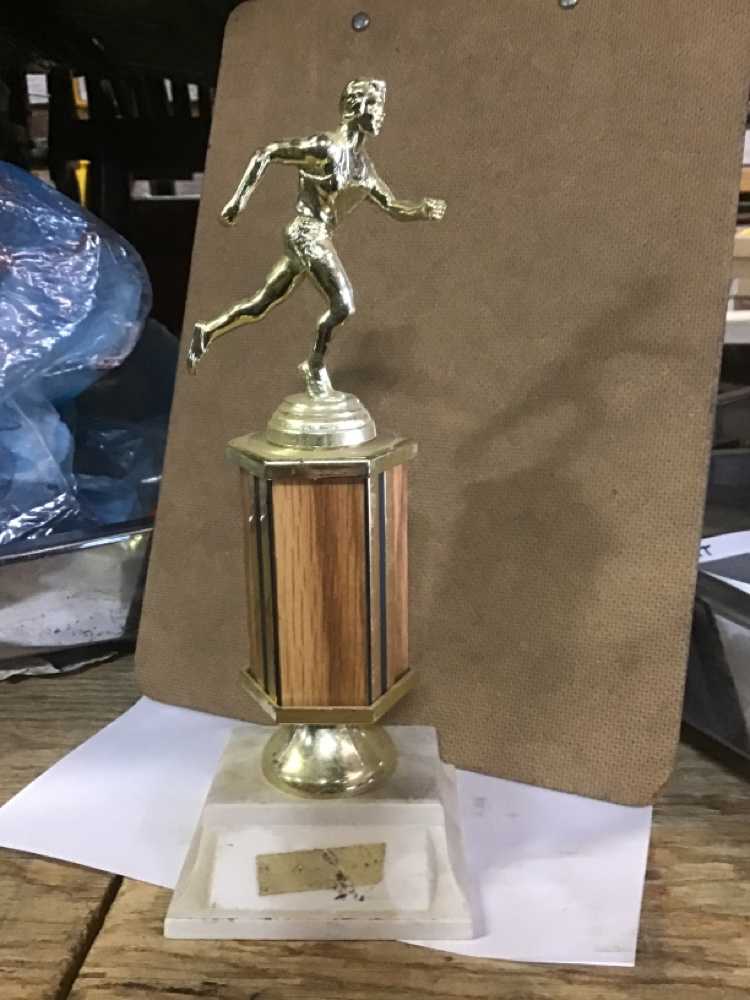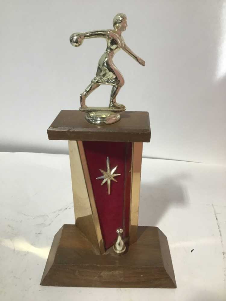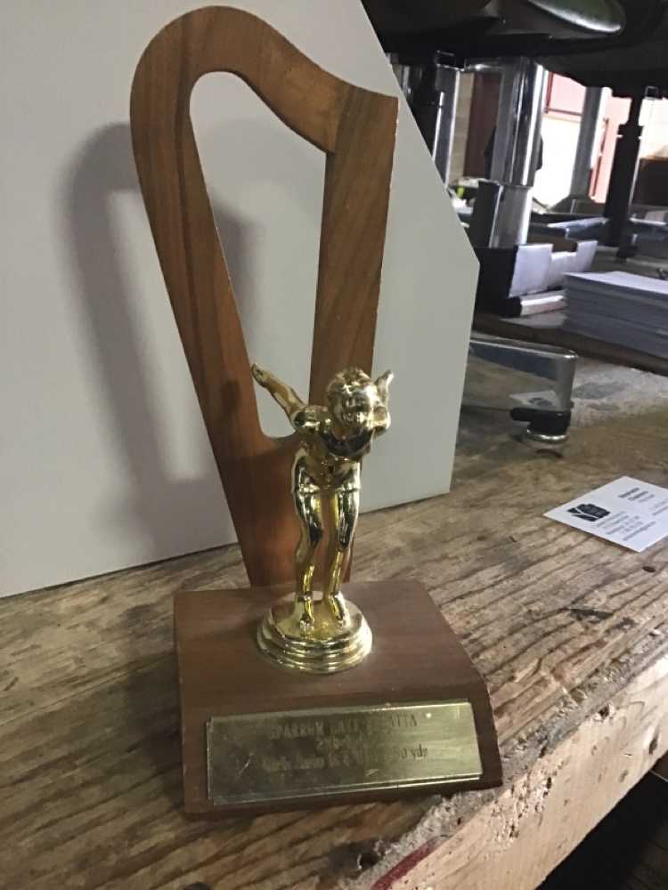 Brown Wood Gold Plastic Trophy With Man Holding Gun On Top