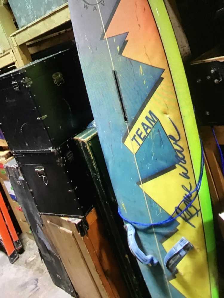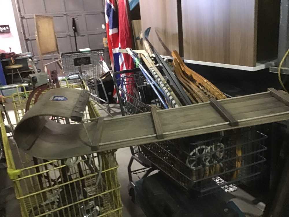 Brown Wood Scorekeeper With Numbers And Gold Metal Rails