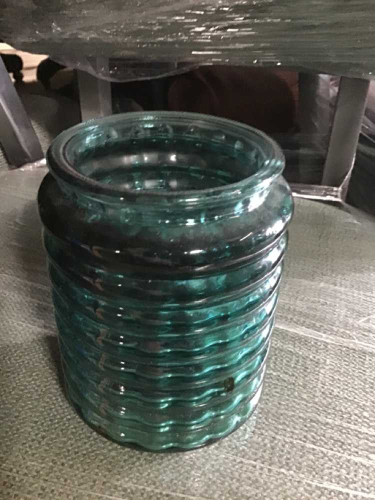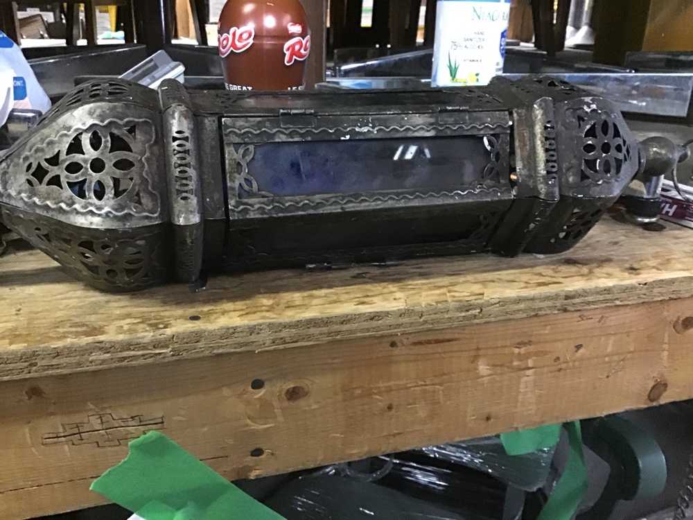 Grey Perforated Tin Hanging Candle Holder With Glass And Hanging Chain