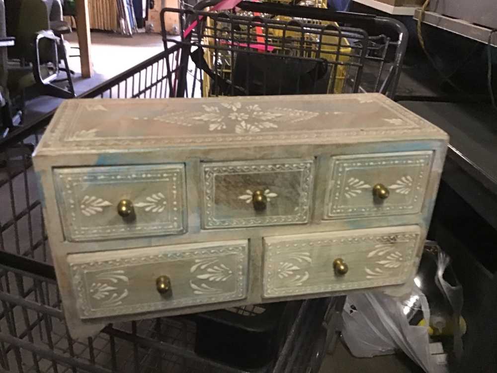 Grey White Blue Wood Jewellery Box With 5 Drawers