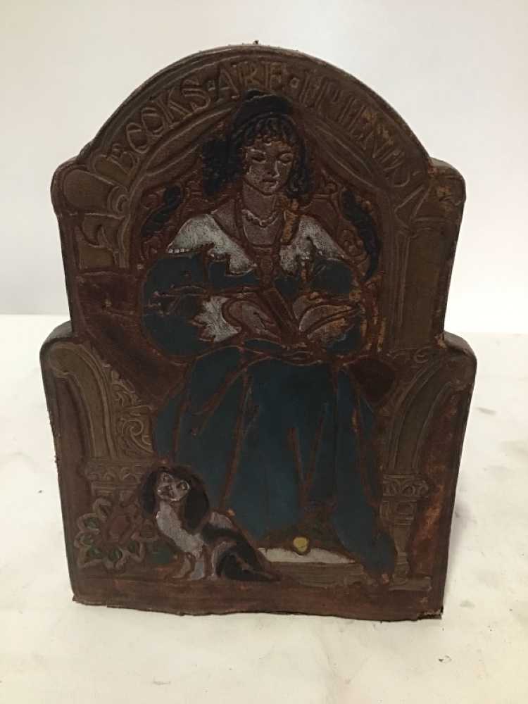 Leather Bookend Woman Reading With Dog ”Books Are Friends”