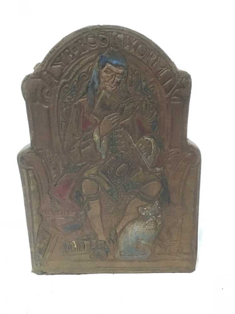 Leather Bookend Man Reading With Cat ”Ye Bookworm”