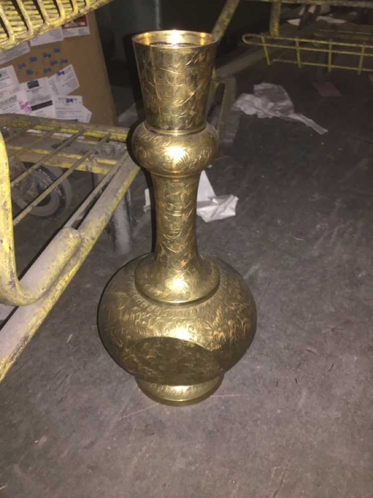 Maroon Green Blue Purple Asian Brass Vase With Floral Design